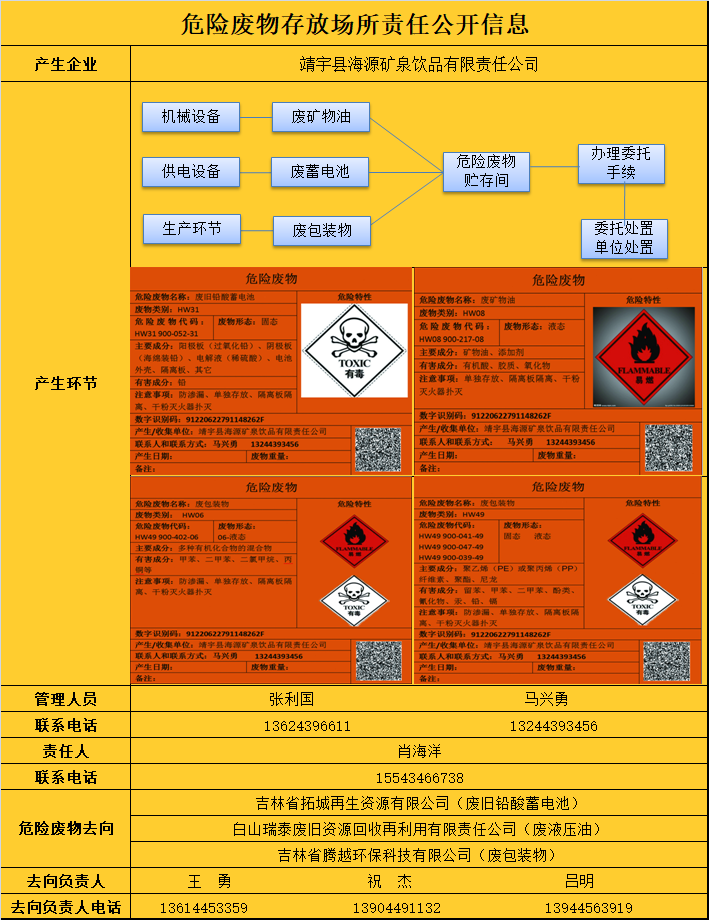 危險廢物存放場所責任公開信息